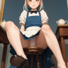 不思議の国のアリス風美少女 Part7 Illustration Gallery X Facebook はてブ LINE コピー 2024.03.13 不思議の国のアリス風の美少女AIイラストをStable Diffusionにて生成しました。今回のアリスちゃんには膝を曲げてしゃがんでもらいました。いわゆるスクワットのポーズです。スカートをはいた美少女がこんなポーズをしたら見えるに決まっています、パンツ!しかもやや下からのアングルでしっかりと股間に装着されているパンツを捉えた構図となっています。ブルーとホワイトのコスチュームが清楚で可憐な雰囲気を醸し出す中、露わになったパンツが私の心を躍らせてくれるのです。