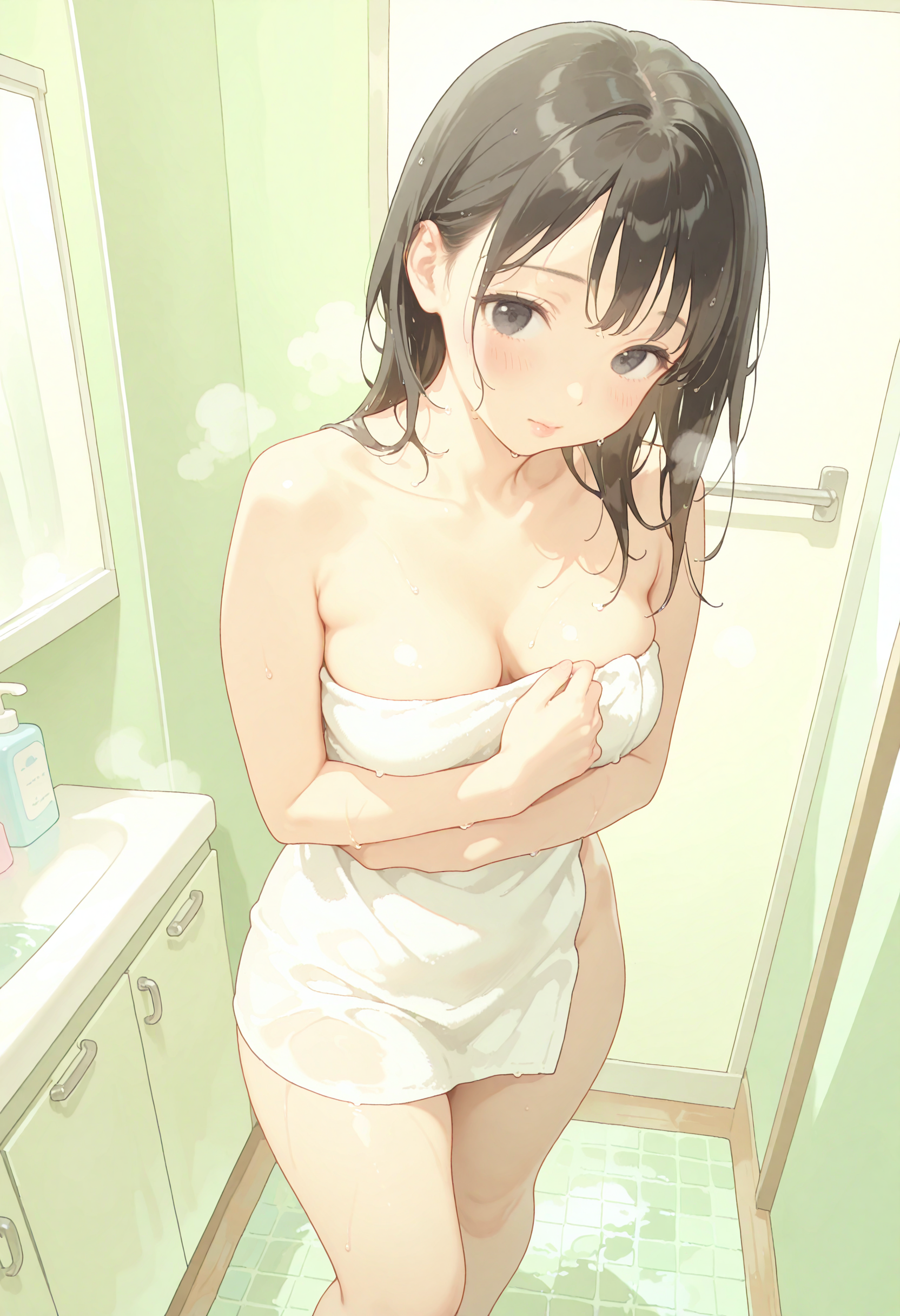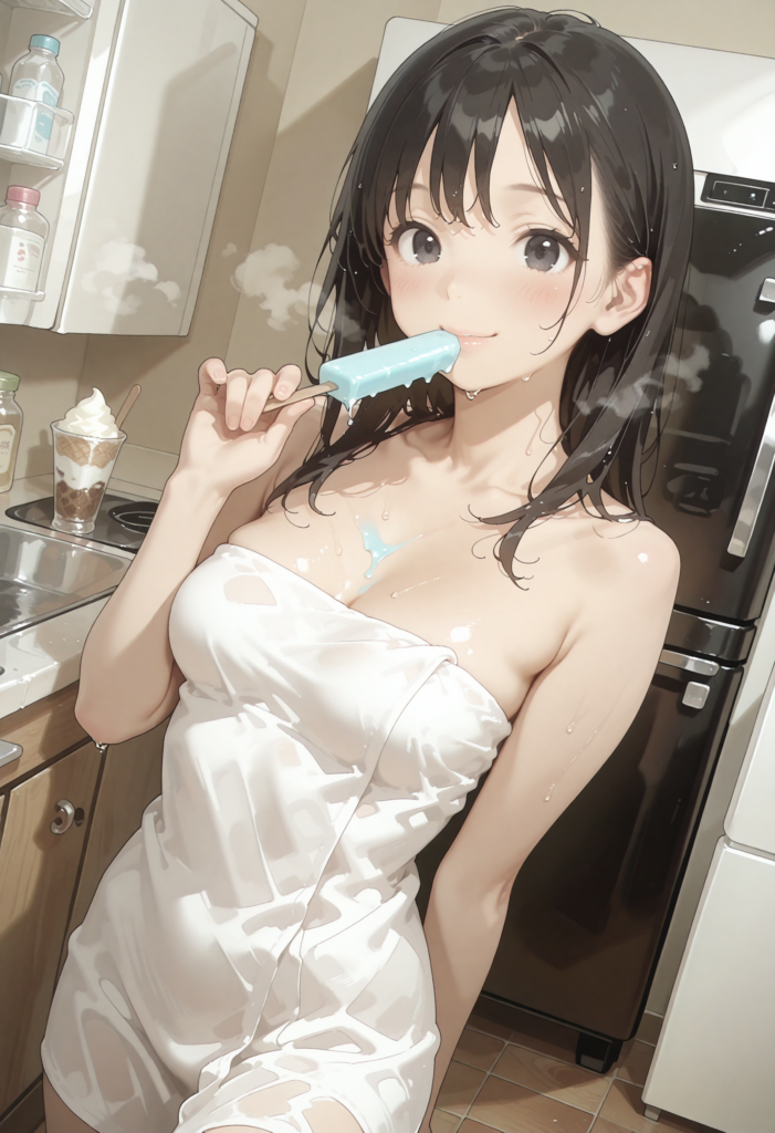 湯上がりの至福。バスタオル姿の美少女と「お風呂上がりのご褒美」 Illustration Gallery X Facebook はてブ LINE コピー 2026.02.10 一日の疲れを癒やすバスタイム。その後に待っているのは、バスタオル一枚で過ごす開放的な時間と、冷たいアイスクリームのご褒美……。今回は、そんな『お風呂上がりのプライベートな瞬間』を切り取ったAIイラストです。潤った肌の質感から、思わぬハプニングに慌てる表情まで、リアルな臨場感をお楽しみください。 お風呂上がりの女性が魅せる、飾らない美しさと愛らしいハプニング。バスタオルとアイスというシンプルな組み合わせだからこそ、彼女たちの素顔がより引き立ちますね。