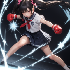 エネルギー弾を放つ制服美少女