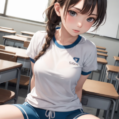 ロッカールームで座って開脚!スクール水着姿のポニーテール美少女(水着美少女 Part30) Swimsuit X Facebook はてブ LINE コピー 2024.04.09 紺色のスク水を身にまとったポニーテール美少女が、更衣室で脚を広げて座っているAIイラストです。水着の質感とうっすら浮かび上がった股間のスジに心を奪われてしまいます。大きすぎない、ほどよいサイズの胸もとっても美しいです。
