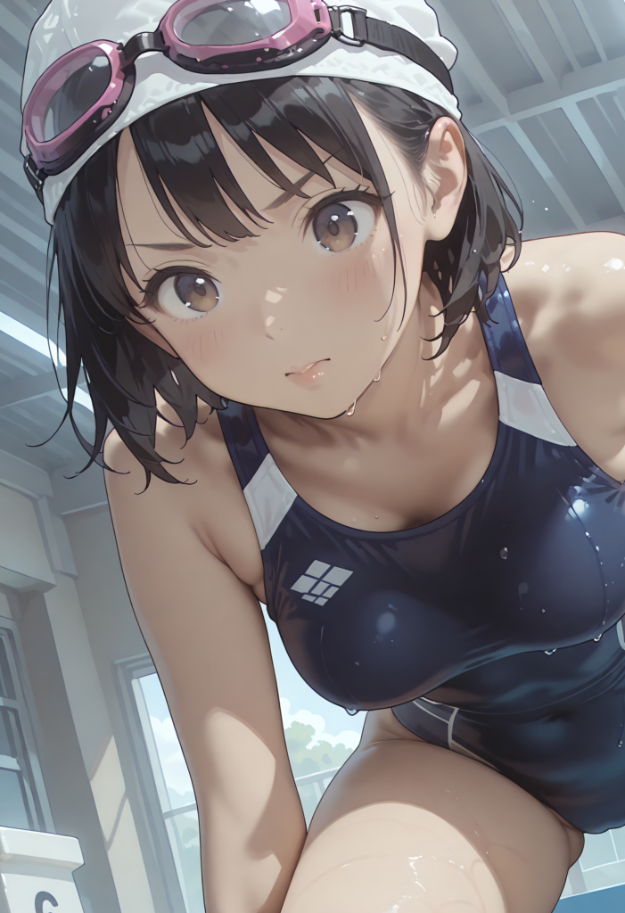 身体に吸い付くような競泳水着の質感、競泳水着特有のタイトなシルエットが強調するアスリートの肉体……。今回は『競泳女子』をテーマに、AIイラストでしか描けないダイナミックな世界観を構築しました。ウォーミングアップ、スタート前の緊張感から、水中の幻想的な光景、そしてレース後の思わぬ一幕まで。彼女たちの熱い鼓動を感じてください。