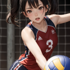 Stable Diffusionで生成したバレー部のツインテール美少女のAIイラスト、ドジっ娘編です。今回はレシーブやトスをミスってしまったり、ネット付近でサーブを打とうとしていたり、さらにはバスケットのシュートの構えをしていたり、なんだか運動音痴な感じのする美少女バレー部員のイラストとなっています。いや、とーってもKawaiiんですけどね(笑)